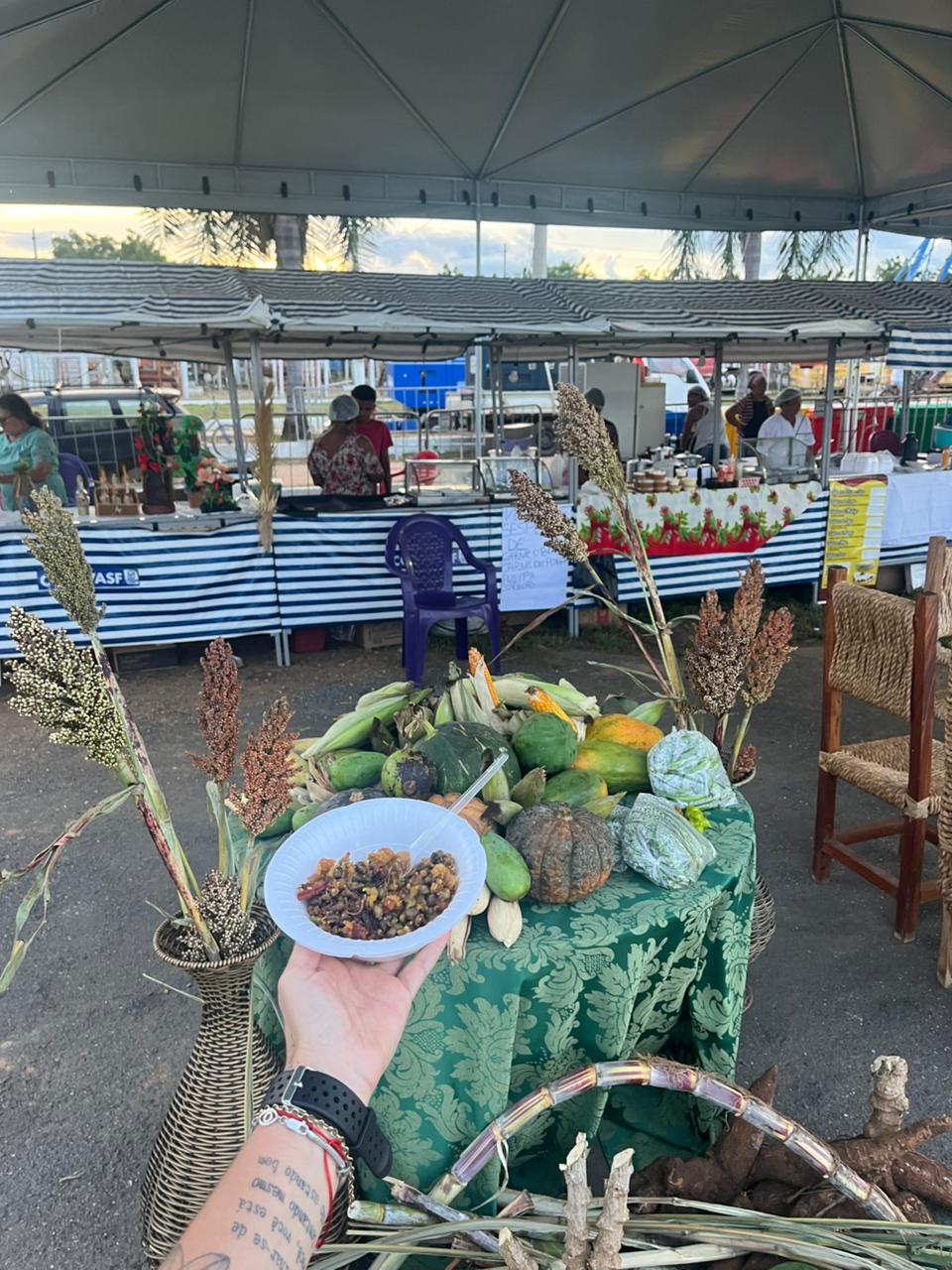 Durante os dias de evento, agricultores tiveram a oportunidade de expor e comercializar seus produtos, levando ao público alimentos frescos, quitandas, doces, artesanato e diversas outras produções da nossa terra.